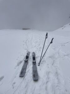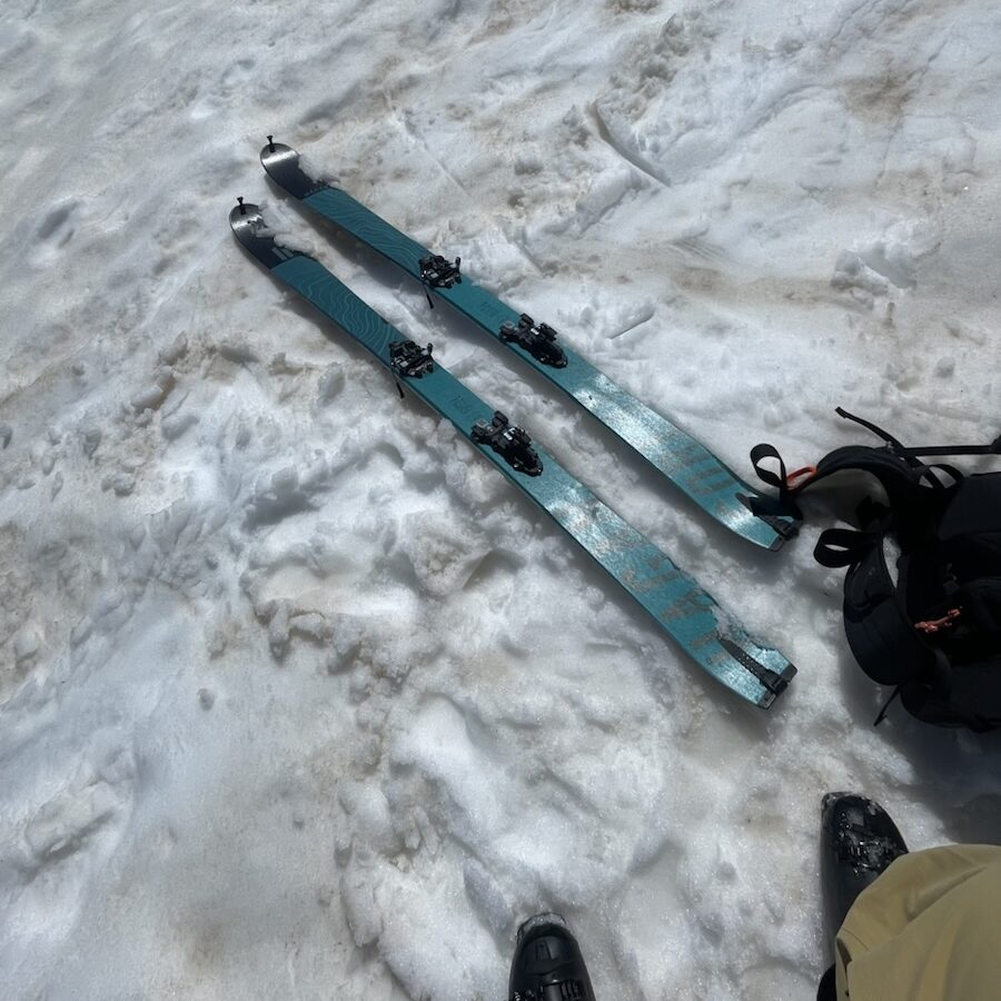 La subida ya la tenían aprobada y con nota: En cuanto puse las pieles y me los puse la sensación fue la noche y el día con los Salomon QST de freeride. Parecía que apenas tenía nada en los pies de lo ligeros que los sentía. Por ponerlo en contexto, los QST 106 están a 2kg cada tabla, más 800 gr de las fijaciones Shift, 2.800 gr por pie. Los Hagan Core 89 estan en 1.350 por esquí, más 389gr de la fijación, 1.740 gr por pie. 1060 gramos menos por pie que no es poco.