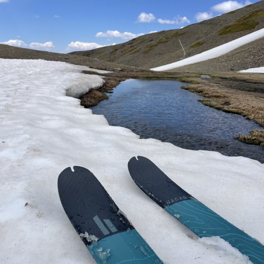Después de un ratito de descompresión admirando los corrales e intentando ubicar como se entra al Canuto (sin éxito), toca plantear bajada. Puedo volver por el Barranco San Juan o bajar por Borreguiles y luego coger el carril hasta la Hoya de la Mora. Decido esto último. Quito pieles, me la veo y me la deseo para ponerme los esquís (fijaciones tech, alias, encaja dos mini pernos en tus botas y confíate al universo), pero una vez que ya lo tengo todo, llega el momento de la verdad: probar los nuevos esquís en la bajada.