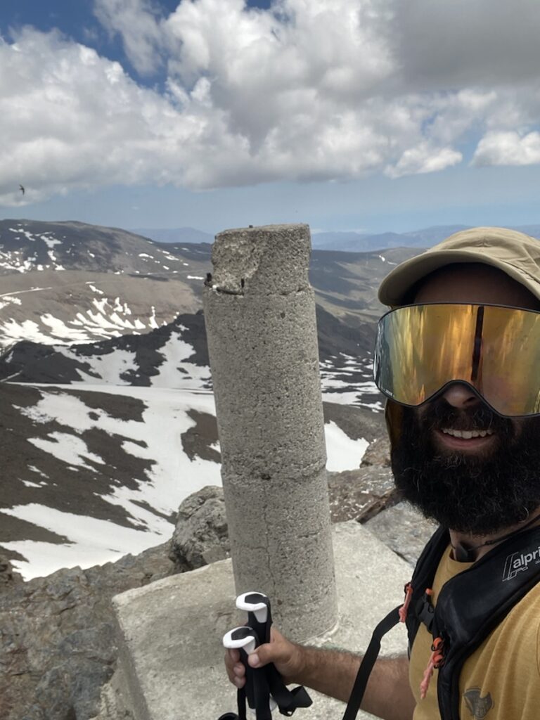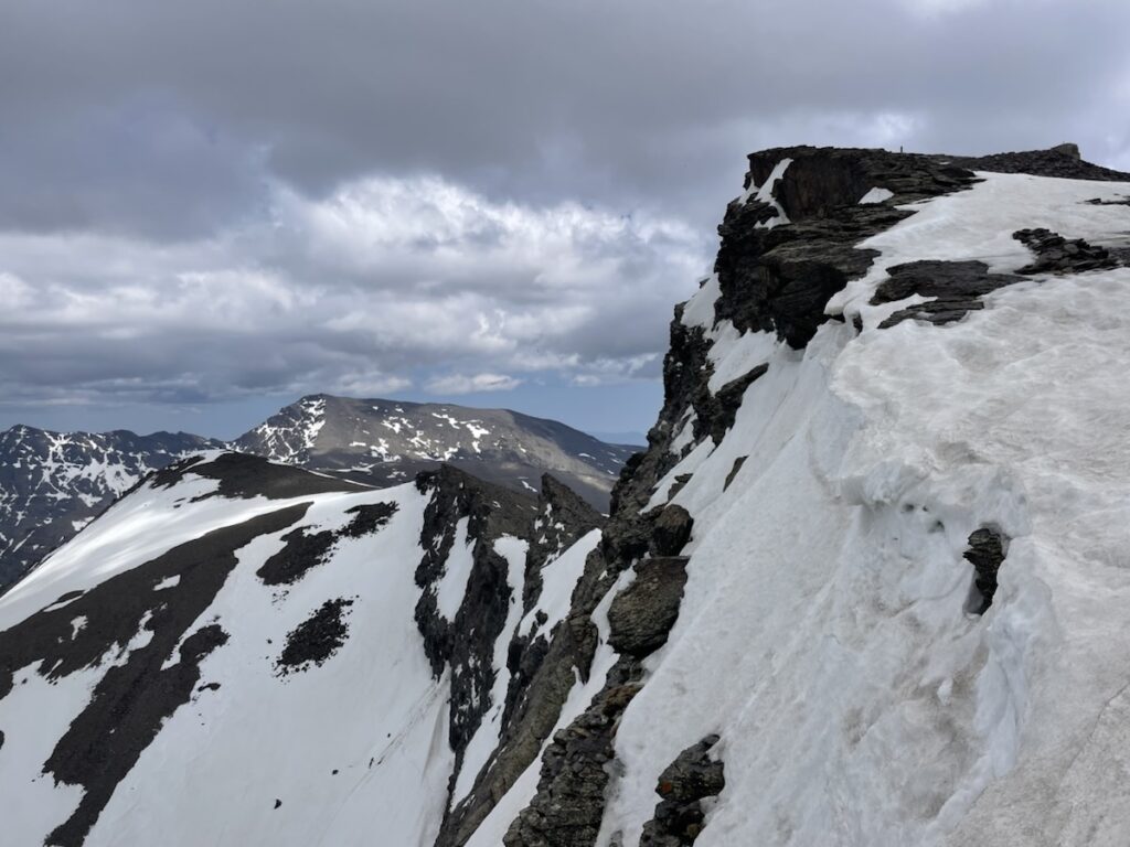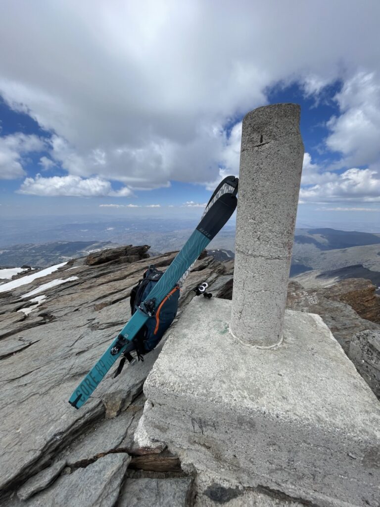 Finalmente llego a lo alto y toca quitarse esquís para coronar. Han sido tres horas y poco a la cumbre desde que me puse los esquís y cuatro horas escasas desde el parking. ¡El Veleta ha caído! (figurativamente, claro).